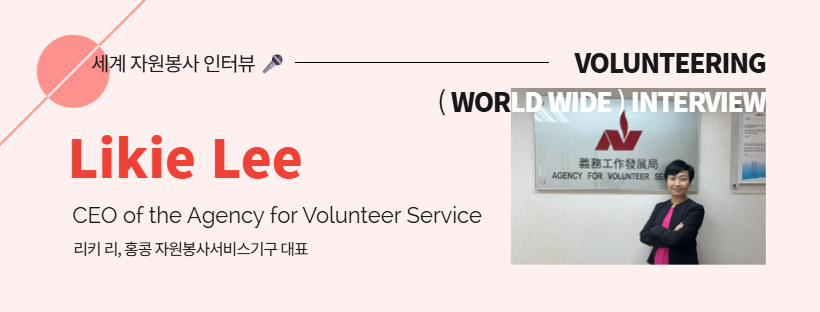 🎤 홍콩으로 가봅니다. 홍콩 자원봉사서비스기구(AVS)대표 Likie Lee를 세계 자원봉사 인터뷰 손님으로 모셨습니다. 자원봉사 발전을 위해 수십 년을 일해온 리키는 풍부한 경험을 바탕으로 자원봉사 현황과 트렌드를 읽고 있습니다. 세계 자원봉사자의 해를 앞두고 홍콩에서는 어떤 전략을 가지고 계획을 세우고 있을까요?보러가기🔍